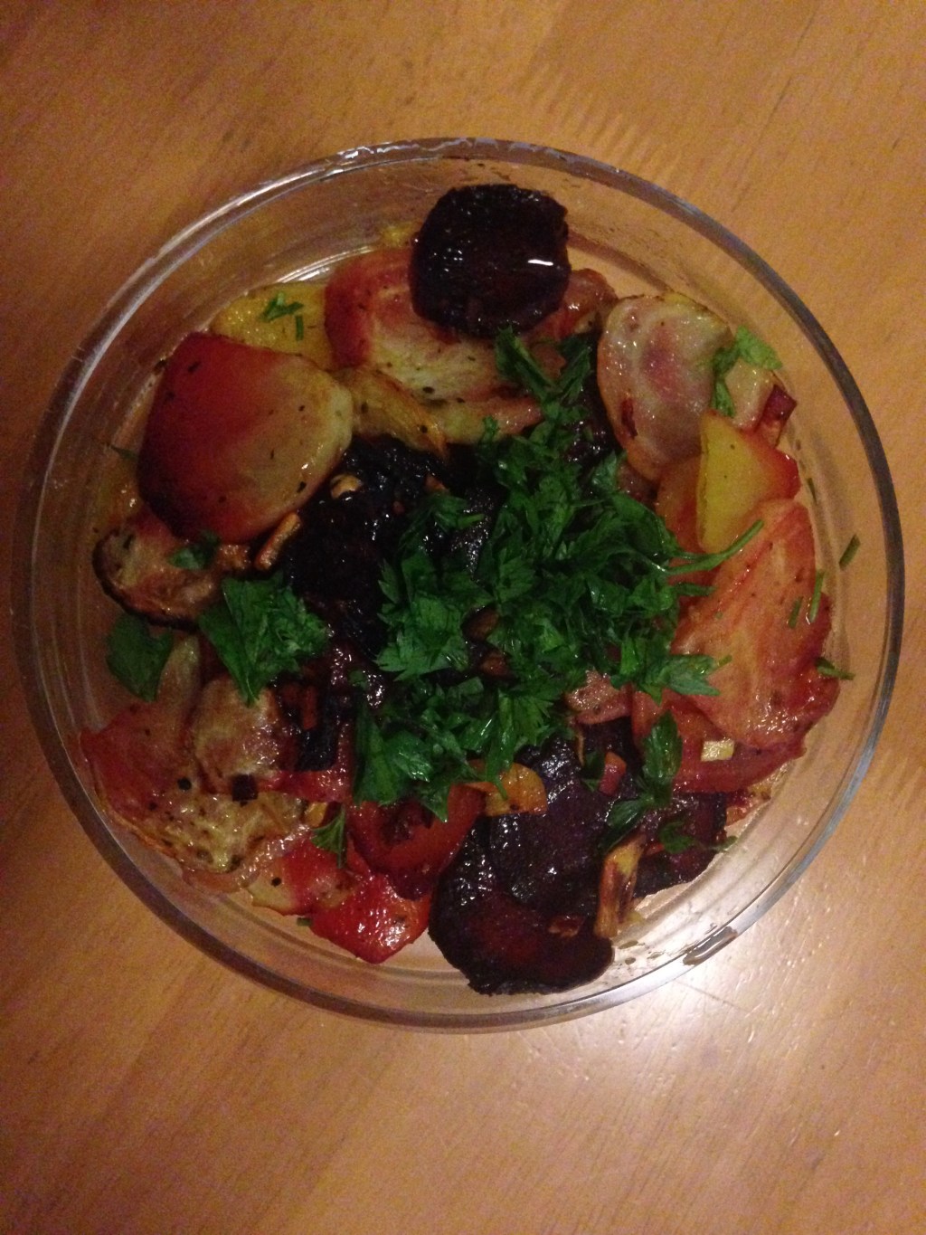 You are asking what did I do with the beets themselves? Again, at the advice of my daughter, I peeled them first, which I never do, sliced them, bathed them in the mix of olive oil, a bit of garlic, basil, oregano, salt and pepper, and roasted them at 420 F for about 20 minutes. Loved them!![IMG_3292[1].JPG](https://noshingacrossthenation.com/wp-content/uploads/2016/09/img_32921.jpg?w=293&h=220)