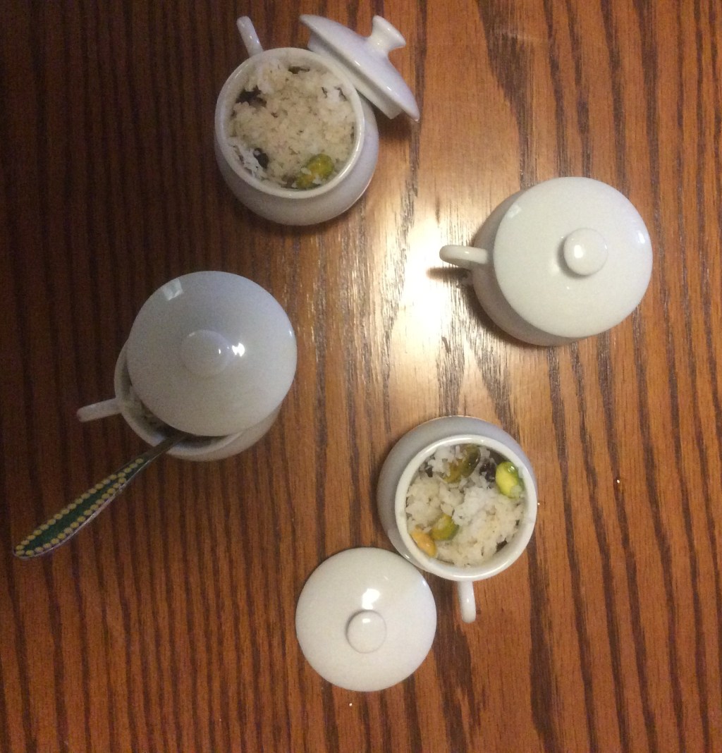 So, to make my daughter, who gave me “Aromas” for my birthday last year I decided to me Poopa’s dessert with coconut and pistachios, but of course, I added my own