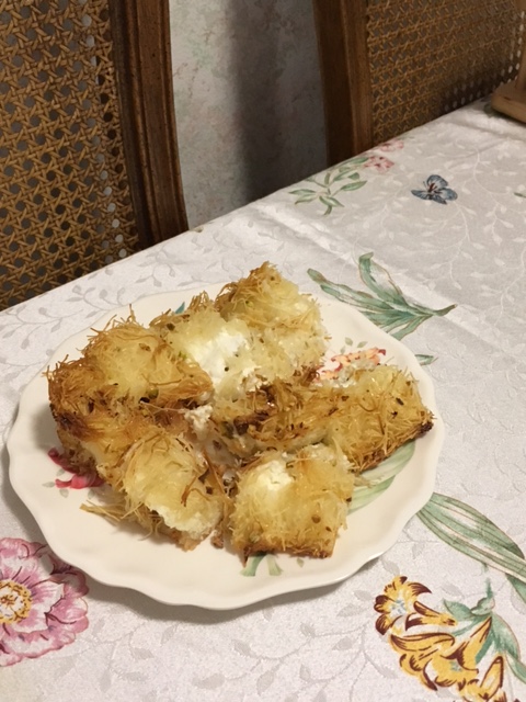 So one of the things I made for the Seuda hamafseket was real Israeli knafeh – what could be better than sweet cheesy dessert?