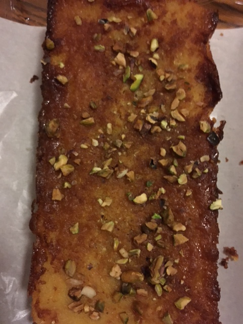 Once you take the cake out, sprinkled some toasted pistachios on top.