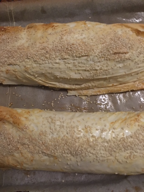 A package of frozen phyllo doughIMG_3840.JPG, thawed in the refrigerator for a few hours or on the counter-top for an hour. You can use puff pastry dough for this recipe too, but it will make the roulette quite heavier.