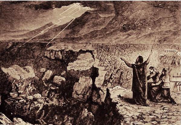 לב וַתִּפְתַּח הָאָרֶץ אֶת-פִּיהָ, וַתִּבְלַע אֹתָם וְאֶת-בָּתֵּיהֶם, וְאֵת כָּל-הָאָדָם אֲשֶׁר לְקֹרַח, וְאֵת כָּל-הָרְכוּשׁ.