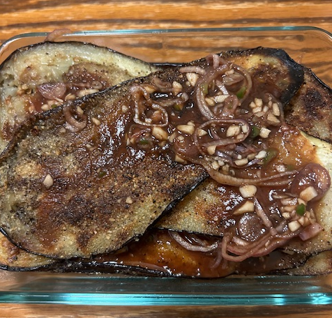 On the other hand, I grew to love pretty much all other kinds of eggplants. For a while our hatzil habayt was the dish we didn’t think to start Shabbat without. Now, I have just made a new recipe that’s quickly becoming my new favorite. It is much easier than most, and healthier than using corn starch that is widely used while frying eggplant: